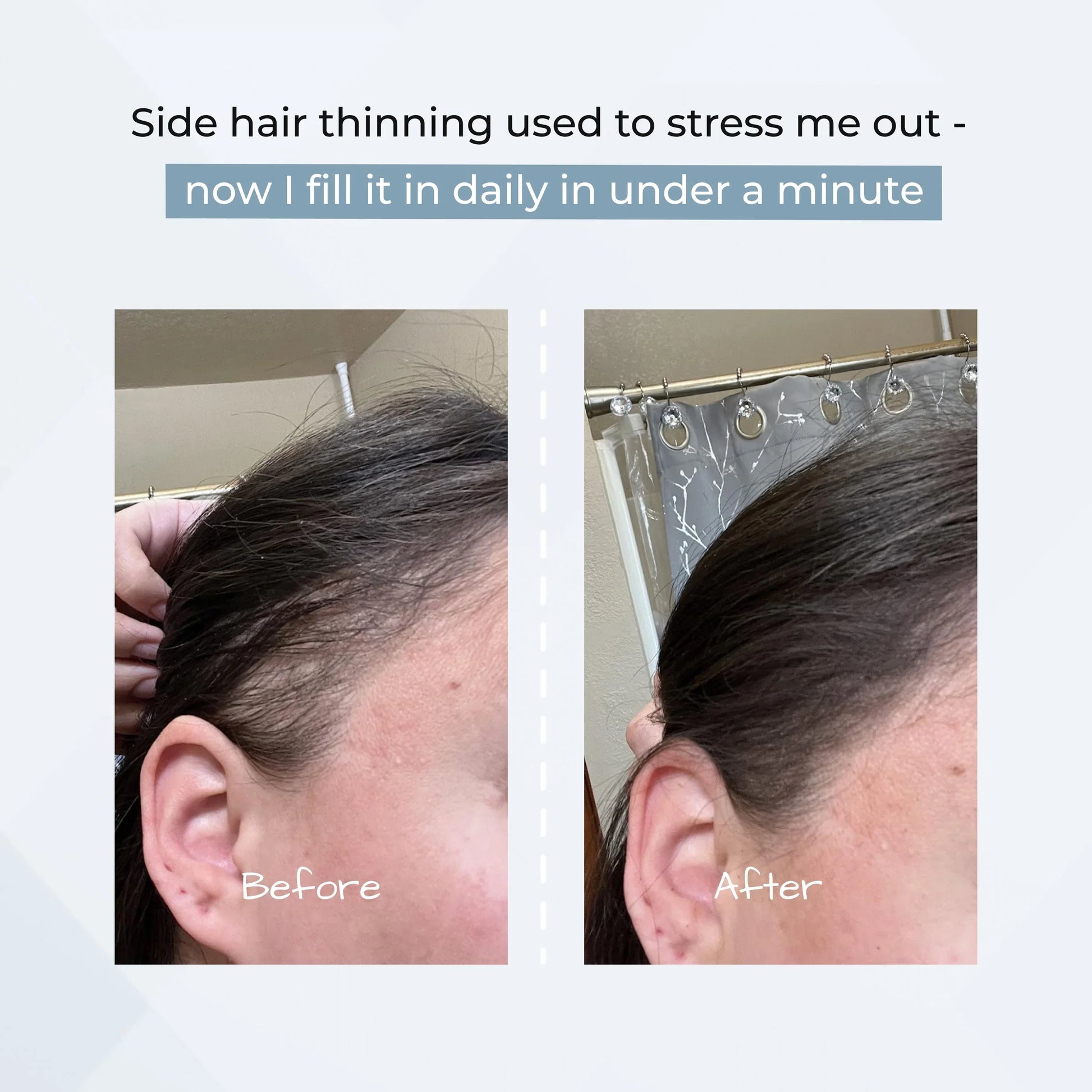 HairShadow is different: instantly conceals greys and roots, fills thinning spots with a natural finish, stays all day (sweat & water resistant), and comes in a compact, mess-free design you can use anywhere.