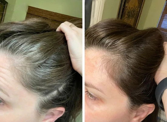 Choose the shade that best matches your hair. Using the brush or applicator, apply the powder to grey roots, thinning areas, or visible roots, using gentle strokes for a natural finish. Check in the mirror for even coverage and finish by lightly brushing or massaging the hair to blend the product. Done! Your hair instantly looks fuller and more even. To remove, simply wash with shampoo as usual.